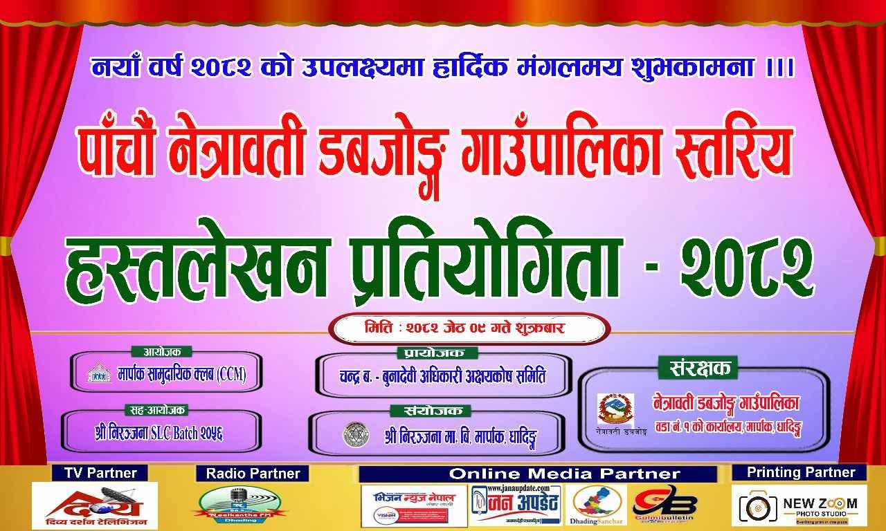 धादिङमा पाँचौं नेत्रावती डबजोङ्ग गाउँपालिका स्तरीय हस्तलेखन प्रतियोगिता हुने