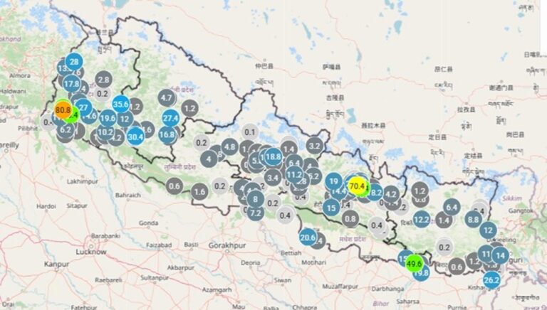महाशाखाले बिहान ४:४० बजे सम्मको वर्षा मापनसहितको नक्सा पनि सार्वजनिक गर्दै नागरिकलाई आवश्यक सतर्कता अपनाउन सुझाव दिएको छ।