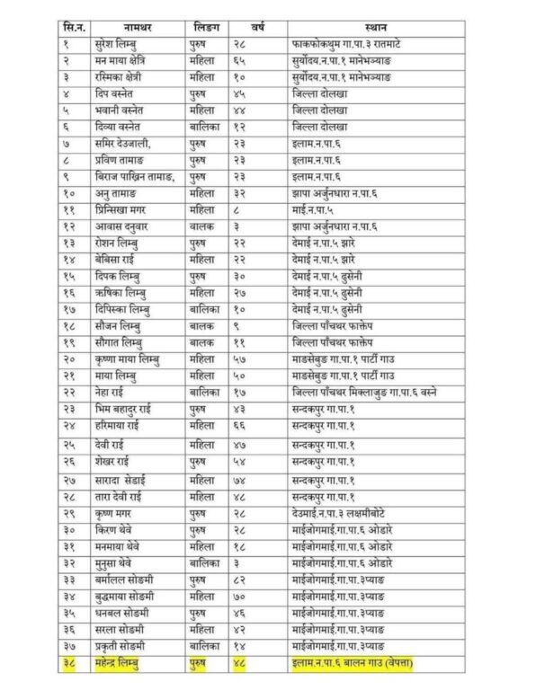 इलामको बाढी-पहिरोमा परी ज्यान गुमाउने ३५ जनाको सनाखत (नामसहित)