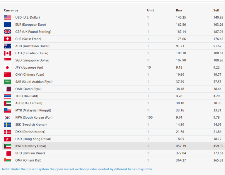 त्यसैगरि आज कुवेती दिनार १ को खरिदर ४५७ रुपैयाँ ३९ पैसा र बिक्रीदर ४५९ रुपैयाँ ३५ पैसा छ। हिजो कुवेती दिनार १ को खरिदर ४५७ रुपैयाँ ८८ पैसा र बिक्रीदर ४५९ रुपैयाँ ८३ पैसा थियो।