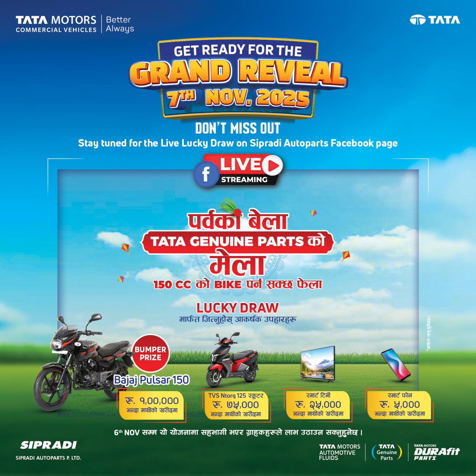 रहने भएकाले, सिप्रदीले ग्राहकहरूलाई समयमै टाटा जेन्युइन पार्ट्स खरिद गरी लक्की ड्रमा सहभागी हुन आग्रह