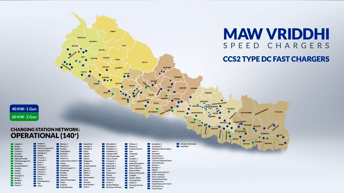 एमएडब्लू वृद्धिको बढ्दो चार्जिङ नेटवर्कले ईभी चालकलाई रेन्ज आत्मविश्वास बढाउँछ र व्यक्तिगत तथा व्यावसायिक प्रयोगकर्ताबीच ईभीको स्वीकार्यता बढाउन सहयोग गर्छ । निरन्तर विस्तार भइरहेको यो पूर्वाधारले नेपालकै सबैभन्दा ठूलो र भरपर्दो ईभी चार्जिङ नेटवर्क निर्माण गर्ने कम्पनीको दीर्घकालीन दृष्टिकोणलाई प्रस्ट पार्दछ ।