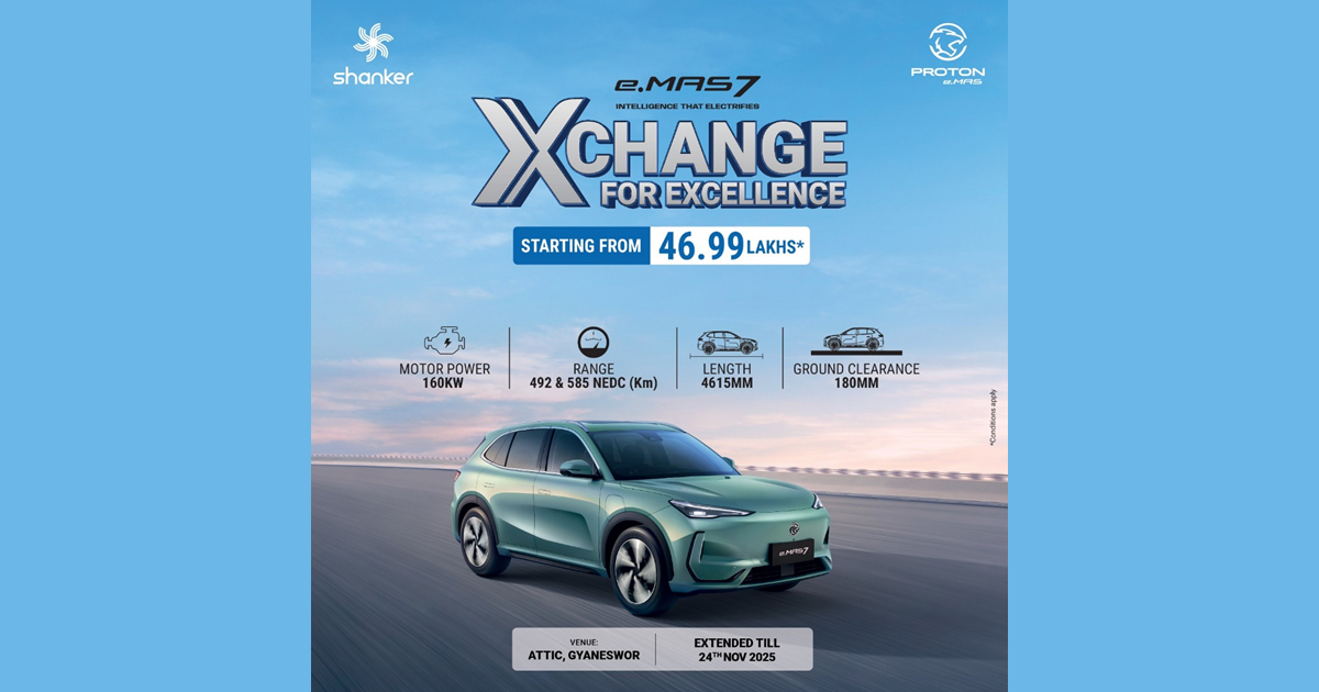 काठमाडौं । जगदम्बा मोटर्सको इलेक्ट्रिक सवारी साधन (ईभी) ब्रान्ड प्रोटोन ईमासको विशेष एक्सचेन्ज अफर एक दिन थप भएको छ । पूर्वनिर्धारित समयमा एक दिन थपिएर सोमबारसम्म अफर सञ्चालन हुने बताइएको छ ।