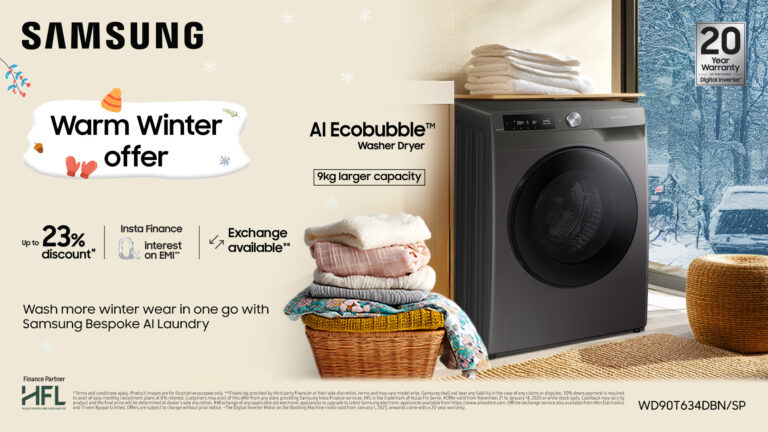 ग्राहकहरूले ७ किलोग्राम देखि १२ किलोग्राम सम्मका एआई इकोबबल वासर ड्रायर, फ्रन्ट लोड, एफएटीएल र एसएटीएल वासिङ मेसिनमा अधिकतम २३ प्रतिशत इन्स्टयान्ट क्यासब्याक प्राप्त गर्न सक्नेछन् ।