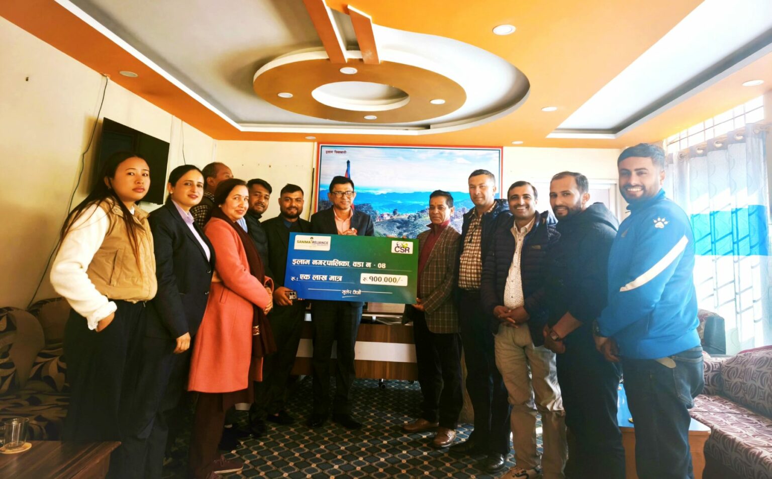 उक्त सहयोग रकम सानिमा रिलायन्स लाईफ इन्स्योरेन्सका प्रदेश प्रमुख कर्मराज पौडेलको उपस्थितिमा इलाम नगरपालिकाका मेयर केदार थापालाई हस्तान्तरण गरिएको हो।