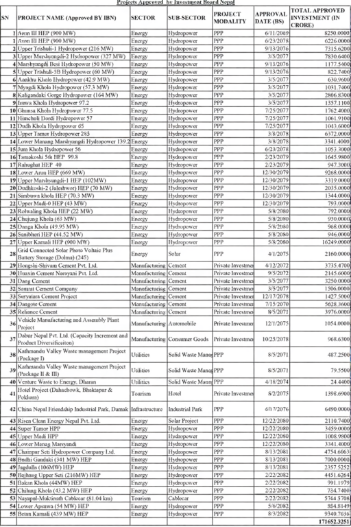 लगानी बोर्डबाट १७ खर्बका ५५ आयोजना स्वीकृत, अधिकांश आयोजना निर्माणकै चरणमा
