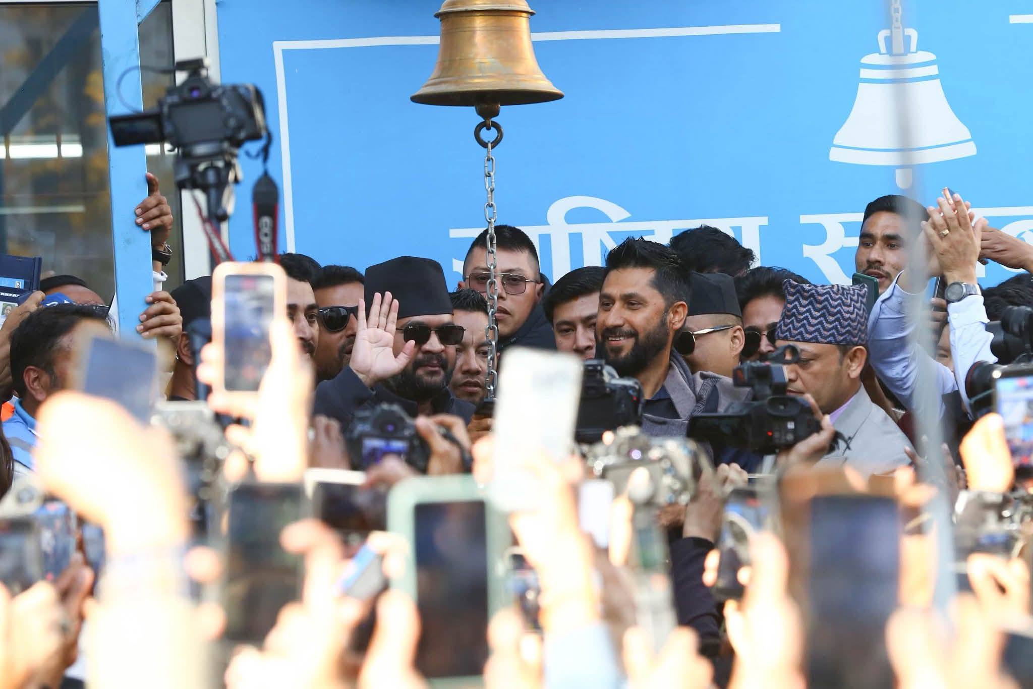 बनस्थलीस्थित रास्वपा कार्यालय पुगेका उनलाई रास्वपा सभापति रवि लामिछानेले स्वागत गरेका थिए। अनि, दुवैजनाले घन्टीघरमा रहेको घन्टी बजाएका थिए।