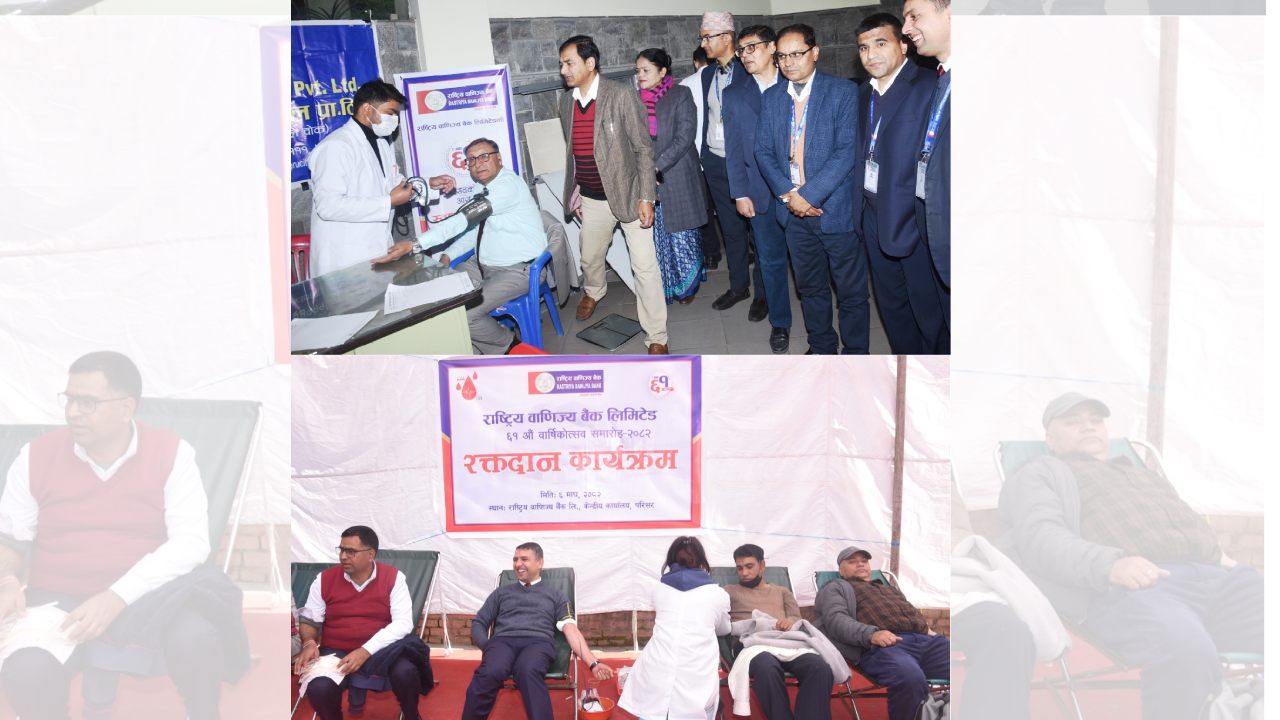 राष्ट्रिय वाणिज्य बैंकको ६१ औं वार्षिकोत्सवको उपलक्ष्यमा रक्तदान तथा नि:शुल्क स्वास्थ्य शिविर सम्पन्न