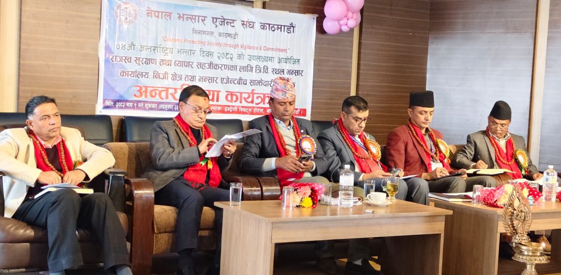७४औँ अन्तर्राष्ट्रिय भन्सार दिवसको अवसर पारेर नेपाल भन्सार एजेन्ट सङ्घ काठमाण्डौद्वारा शुक्रबार आयोजित ‘राजश्व सुरक्षा र व्यापार सहजीकरणमा त्रि.वि. भन्सार कार्यालय, निजी क्षेत्र तथा भन्सार एजेन्टबिच साझेदारी’ विषयक अन्तरक्रिया कार्यक्रममा उनले यस्तो बताएका हुन् ।