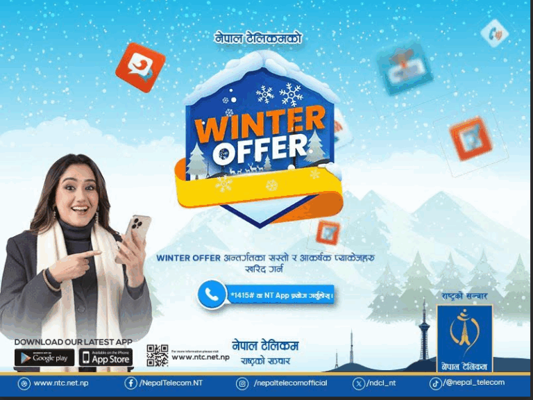 विन्टर अफर अन्तर्गतका विभिन्न प्याकेज मिति २०८२ माघ ११ गते देखि उपलब्ध छ र आगामी ९० दिनसम्म उपलब्ध हुनेछ ।