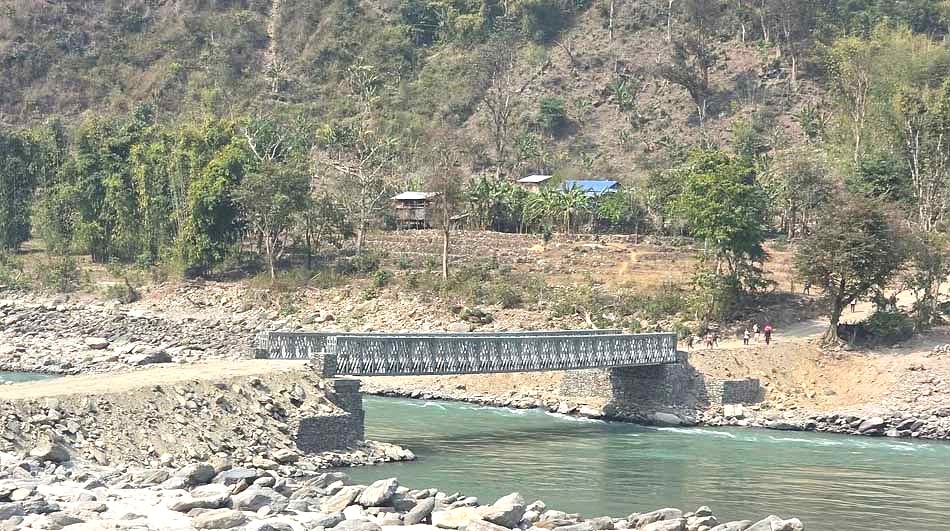 करिब १३ वर्ष लगाएर निर्माण भएको आर्क डिजाइनको पुल बाढीले बगाएपछि गत वर्षको पुसमा जडान गरिएको बेलिब्रिज वर्षायाम सुरु भएसँगै निकालिएको थियो ।