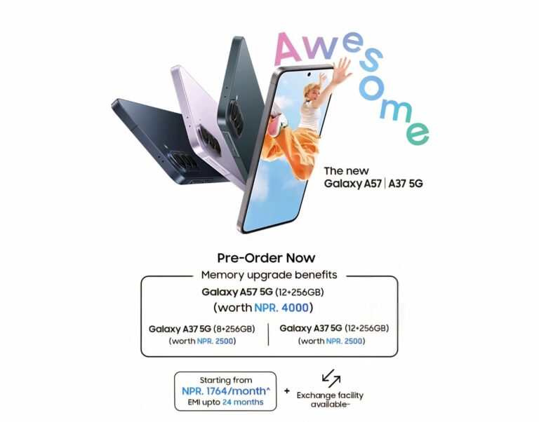 यी डिभाइसहरुमा अझ आकर्षक डिजाइन, स्मार्ट क्यामेरा प्रणाली र उन्नत सफ्टवेयर टुलहरू समावेश गरिएको छ । पेशेवर, विद्यार्थी वा दैनिक प्रयोगकर्ताहरूका लागि, नयाँ ए सिरिजलाई दैनिक कामहरू अझ सहज रूपमा गर्न डिजाइन गरिएको हो । ए५७ फाइभजी र ए३७ फाइभजी को प्रि–अर्डर नेपालमा अप्रिल ५ देखि अप्रिल १८, २०२६ सम्म (स्टक उपलब्धतासम्म) खुला रहनेछ।