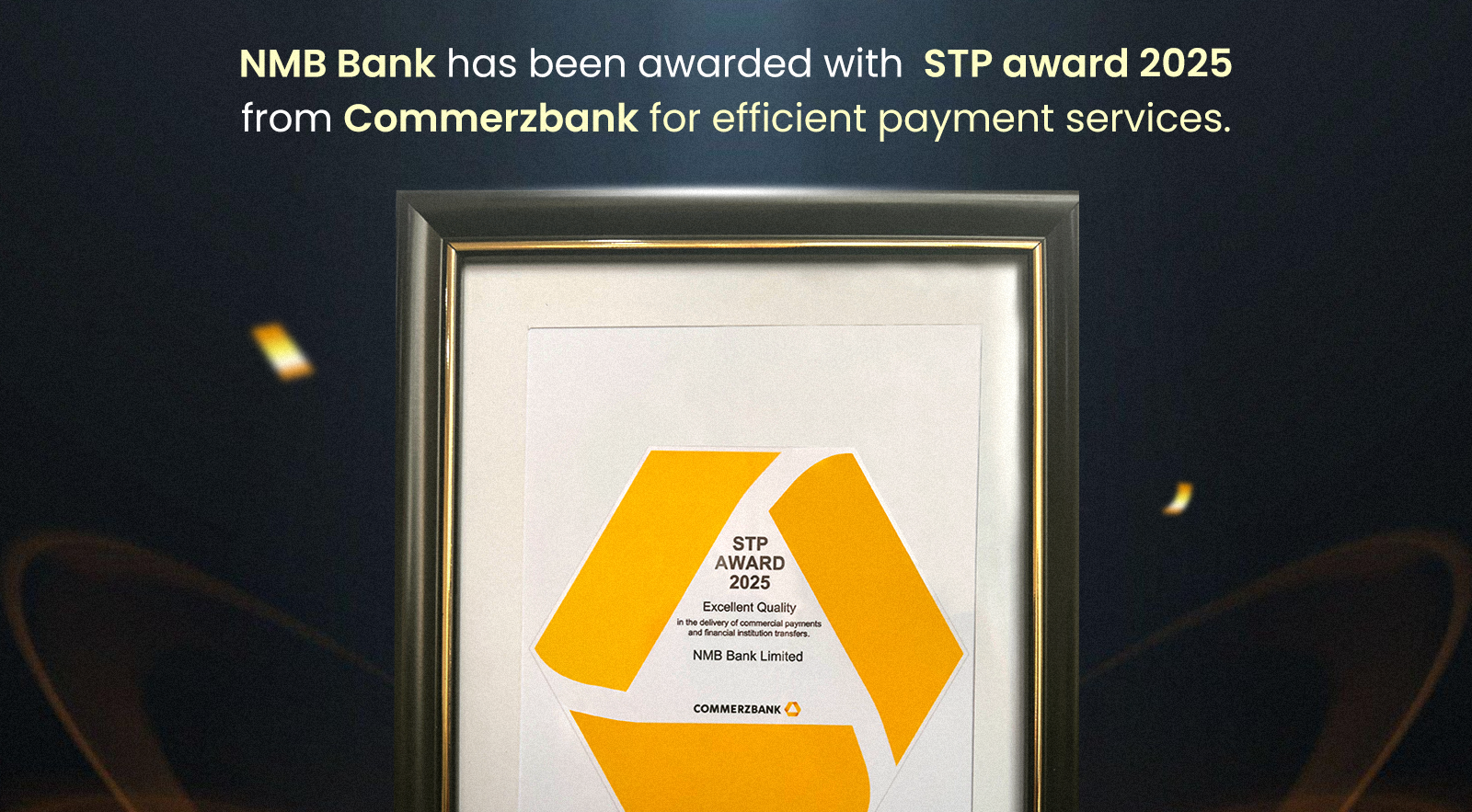 काठमाडौँ । एनएमबि बैंकले व्यावसायिक भुक्तानी तथा वित्तीय संस्था स्थानान्तरणमा उत्कृष्ट गुणस्तर र दक्षता प्रदर्शन गरेबापत कमर्ज बैंक एजी, जर्मनीबाट प्रतिष्ठित ‘एसटीपी अवार्ड २०२५’ प्राप्त गरेको छ ।