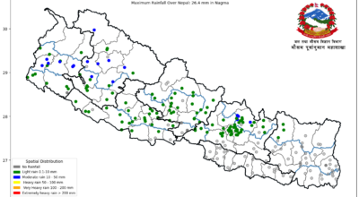 काठमाडौँ । नेपालमा पश्चिमी वायुको सामान्य प्रभाव रहेको छ । हाल कोशी, गण्डकी र कर्णाली