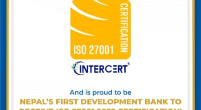 ज्योति विकास बैंक ‘आईएसओ २७००१:२०२२’ प्रमाणपत्र प्राप्त गर्न सफल